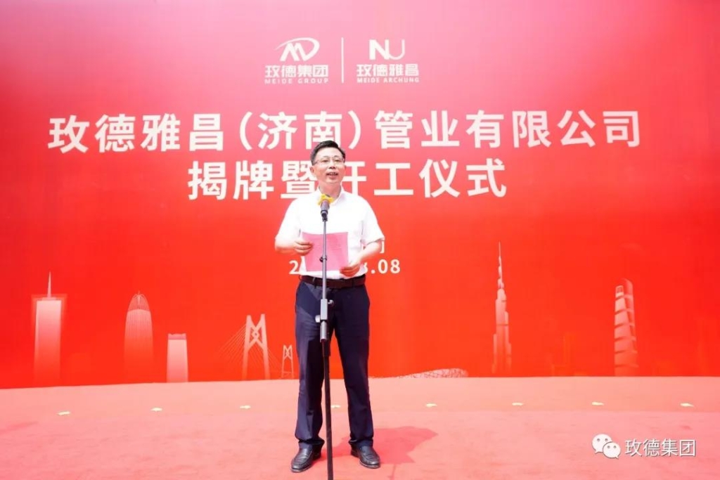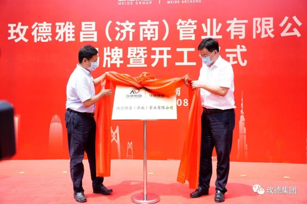 2021年8月8日,玫德雅昌(濟南)管業有限公司揭牌暨開工儀式在濟南平陰成功舉行,平陰縣委書記楊旭東,縣長王秀成,縣政協主席趙敬成,玫德集團董事局主席孔令磊,副主席劉勇、亓曉玉,玫德雅昌總經理薄祥軍、玫德雅昌濟南工廠廠長劉攀以及平陰縣有關單位的主要負責人,玫德集團駐平陰各成員企業總經理參加了本次活動。