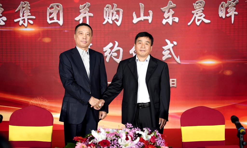 玫德集團副主席胡文有先生與原山東晨暉電子科技有限公司董事長王學水先生現場簽約,正式宣布玫德集團與山東晨暉電子并購成功。