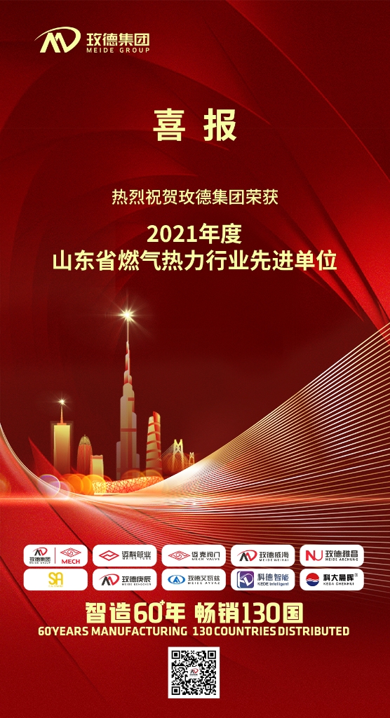 熱烈祝賀玫德集團榮獲“2021年度山東燃氣熱力行業先進單位”。