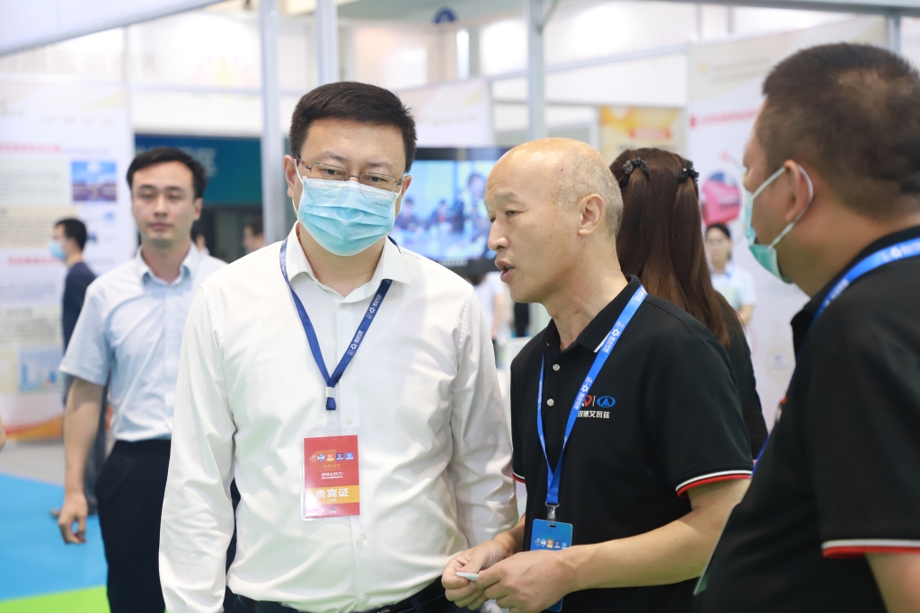 中國國際貿易促進委員會濟南市分會副會長張喆蒞臨玫德展區考察,并作出指導,玫德艾瓦茲(濟南)金屬制品有限公司總經理田玉臣進行介紹與講解。