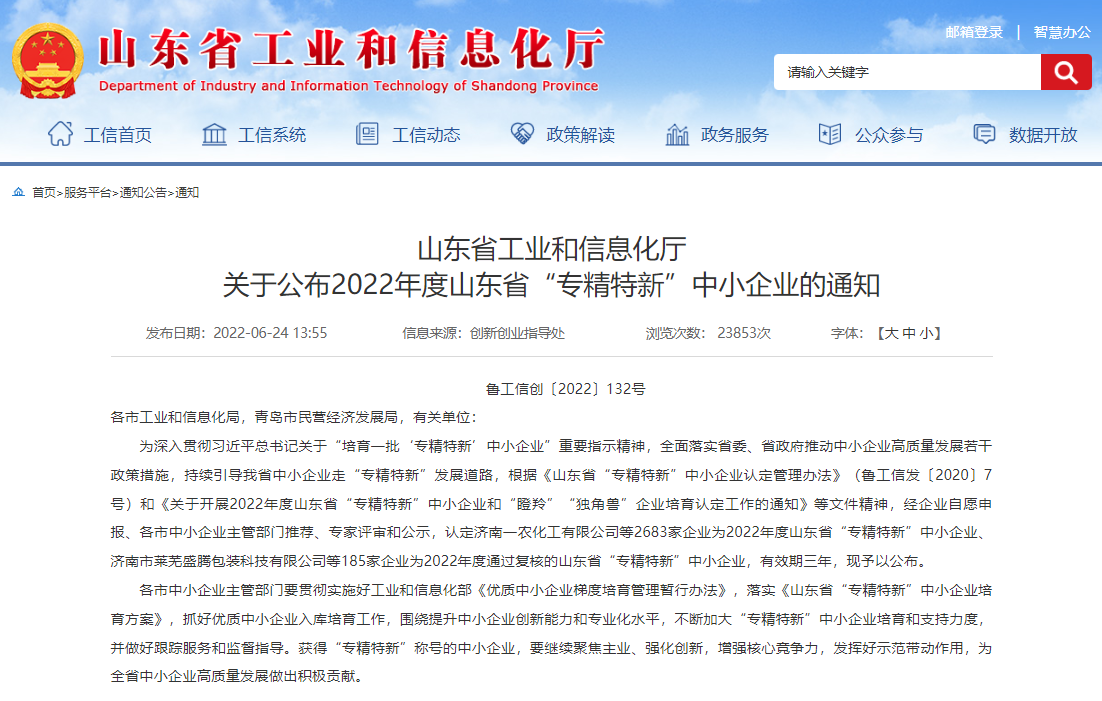 8月9日,山東省工業(yè)和信息化廳公布了2022年度山東省“專精特新”中小企業(yè)的通知,濟南邁科管道科技有限公司榮獲“國家專精特新‘小巨人’企業(yè)”稱號。