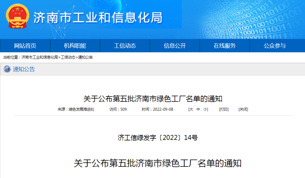 第五批濟南市綠色工廠名單