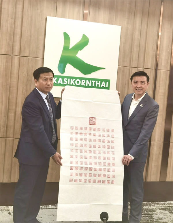 3月27日,考察團一行拜訪了開泰銀行總部(KASIKORNBANK),開泰銀行執行副總裁鄭卓文、第一副總裁王炳金參加接待,并對開泰銀行的發展和業務進行了介紹,孔主席代表考察團發表了致辭并向開泰銀行介紹泰鋼管配件有限公司情況,雙方互贈禮物并合影留念。