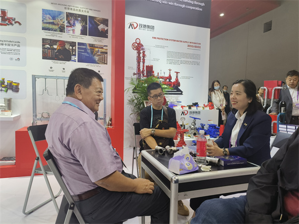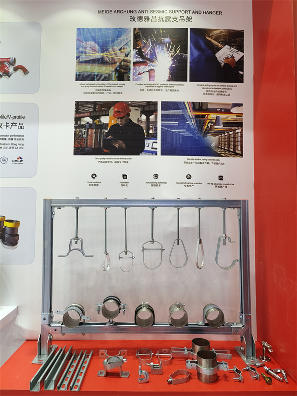 展會期間,玫德安排了滿滿的展示環節,多角度、全方位介紹玫德產品與解決方案,包含快裝管道系統、金屬軟管、支吊架系列產品、閥門產品等。