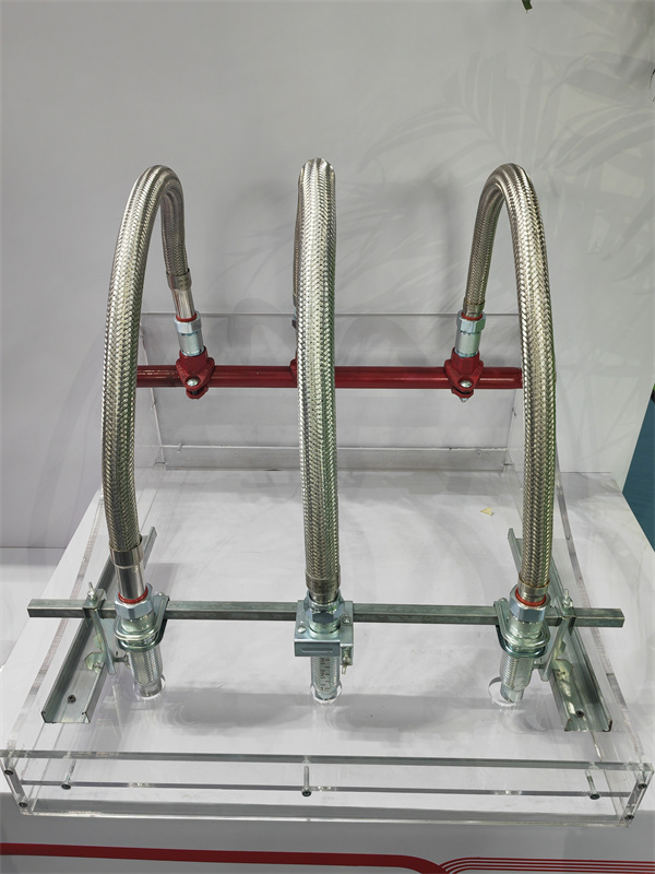 消防金屬軟管專業名稱為消防灑水軟管,主體材質不銹鋼,包含不銹鋼軟管(即波紋管)和安裝組件,用于自動噴淋系統中噴淋頭與主管的連接,代替傳統硬管。玫德艾瓦茲消防軟管具備獨特優勢: