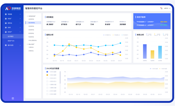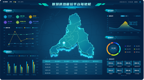 智慧供熱管控平臺針對現有換熱站及熱源系統,具備供熱概覽、全面監控、氣象參數、能耗分析、單耗分析、室溫采集、室溫平衡、室溫達標統計等模塊。