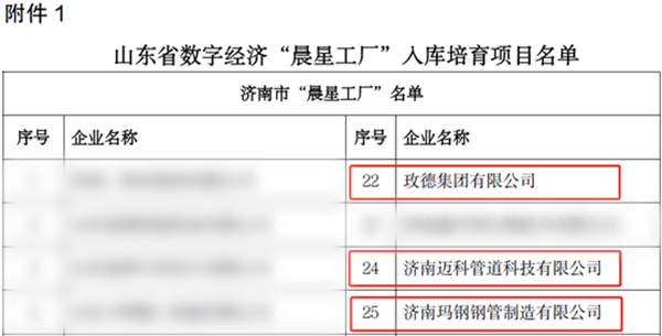 近日,山東省工業(yè)和信息化廳下發(fā)了《關(guān)于開展數(shù)字經(jīng)濟(jì)“晨星工廠”入庫(kù)培育工作的通知》,公布了山東省首批數(shù)字經(jīng)濟(jì)“晨星工廠”和首批“數(shù)據(jù)賦能”優(yōu)秀產(chǎn)品,玫德集團(tuán)有限公司、濟(jì)南邁科管道科技有限公司、濟(jì)南瑪鋼鋼管制造有限公司、玫德集團(tuán)威海有限公司、臨沂玫德庚辰金屬材料有限公司、玫德集團(tuán)臨沂有限公司6家成員企業(yè)入選山東省首批數(shù)字經(jīng)濟(jì)“晨星工廠”。