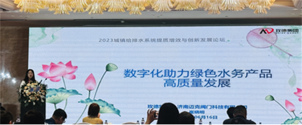 邁克閥門研發中心主任崔曉明發表了《數字化助力綠色水務產品高質量發展》主題報告,針對雙碳目標背景下,如何利用好數字化、智慧化,開發定制化解決方案、開發綠色低碳產品進行了介紹。她還向與會的專家和用戶分享了玫德集團在水利水務領域控制、傳輸、連接、計量及智慧管理平臺的一站式解決方案,包括從水源到用戶、從給水到排水全工藝段。