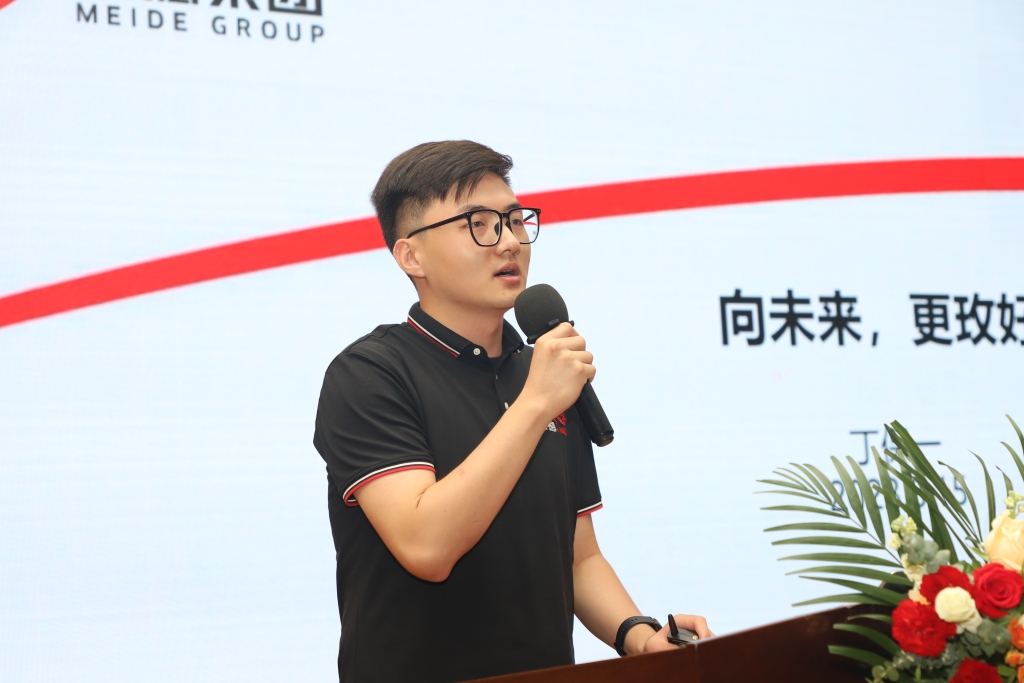曾獲得過瑪鋼助學金的玫德集團中層干部代表付茂華,以及目前已擔任主管的2021屆管培生丁保一,分別結合各自的工作經歷,向與會同學們分享了自己在玫德的心路歷程和成長經驗,給同學們以啟迪。