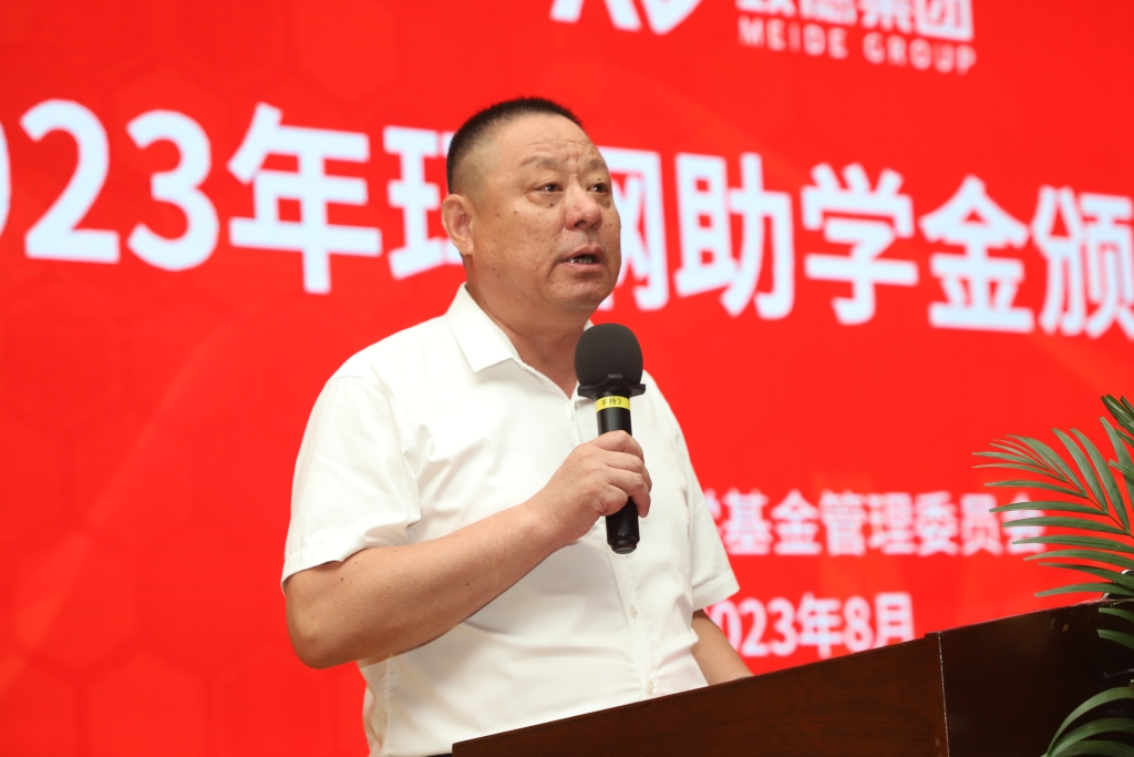 平陰縣第一中學校長孫成濤介紹了平陰一中2023年高考情況,并表示將繼續團結帶領全校師生員工教職工不忘初心,精心育人,立信于心,盡責至善,努力提高教育教學質量,用實際行動感謝玫德集團及社會各界給予一中的支持和幫助。