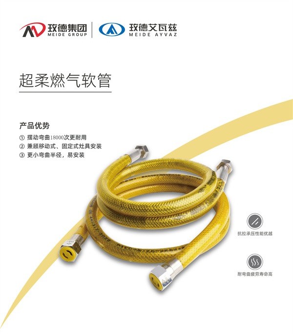 邁克牌超柔燃?xì)廛浌苄阅茏吭剑踩愿撸壕哂袠O佳的柔韌性和耐彎曲性,抗90°扭轉(zhuǎn)彎曲性能測(cè)試最高可達(dá)40000次,超出標(biāo)準(zhǔn)300%;抗30°擺動(dòng)彎曲性能測(cè)試最高可達(dá)18000次,超出標(biāo)準(zhǔn)80%;具備超高的承壓能力,遠(yuǎn)高于燃?xì)忸~定工作壓力要求;抗拉伸性能強(qiáng),承受1000N拉力保持5min,長(zhǎng)度變化率低于1%(標(biāo)準(zhǔn)為3%)。憑借其出色的性能,玫德集團(tuán)成為國(guó)內(nèi)首個(gè)獲得超柔燃?xì)廛浌墚a(chǎn)品認(rèn)證的廠家。