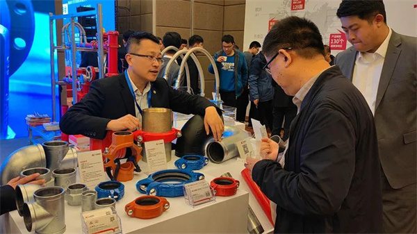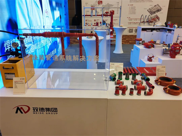 交流會上,玫德展出了溝槽濕式報警閥、法蘭式雨淋報警閥、空氣延時水流指示器、區(qū)域控制閥、快裝管卡、大口徑鋼管溝槽連接解決方案、管道預(yù)制集成解決方案、邁克牌消防軟管、鍍鋅鋼管、消防用碳鋼卡壓產(chǎn)品等產(chǎn)品,吸引了大批參觀者駐足。