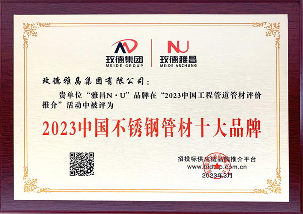 由招投標供應(yīng)鏈品牌推介平臺舉辦的“2023中國工程管道管材評價推介”活動歷時2個多月圓滿結(jié)束,在近期發(fā)布的“2023中國不銹鋼管材十大品牌”榜單中,玫德雅昌品牌脫穎而出,突顯了不銹鋼管材在各類應(yīng)用領(lǐng)域的顯著優(yōu)勢。