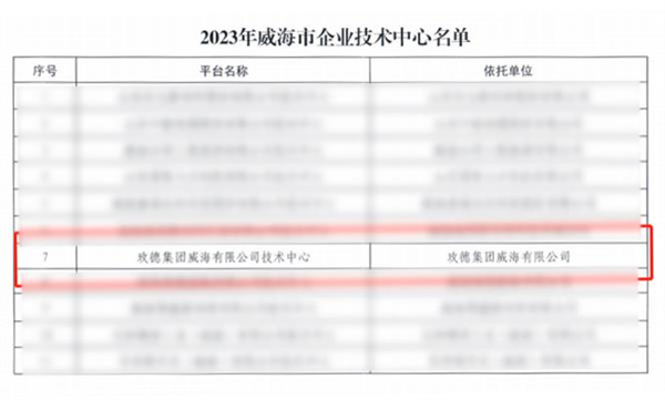 玫德集團威海有限公司深入實施創新驅動發展戰略,經現場考察、專家評審和信用核實,獲得威海市企業技術中心認定。