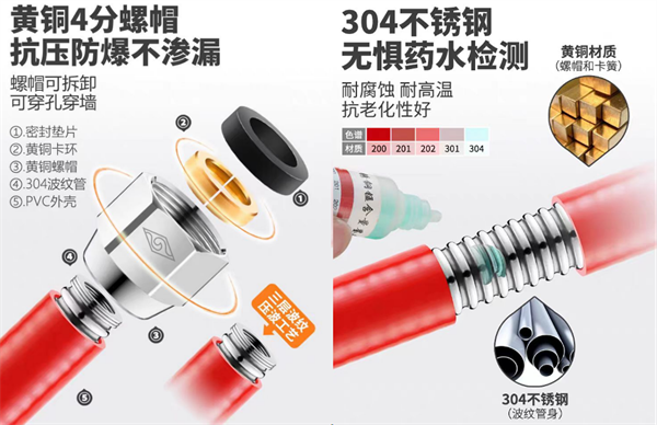 1.軟管性能卓越:采用歐洲進口波紋管生產線,其具備業內領先的四次漸進式成型工藝,生產的波紋管具備超高的柔韌性和耐疲勞性;