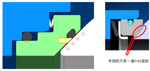 ③層采用RPTFE(強化聚四氟乙烯),耐磨耐高溫。