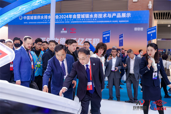 中國城鎮供水排水協會會長章林偉等領導、專家蒞臨玫德集團展區進行參觀指導,并對玫德的發展和取得的創新成果給予高度肯定。