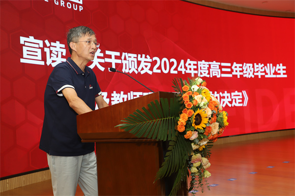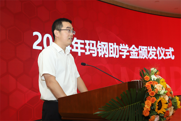 瑪鋼助學基金管理委員會會長、玫德集團董事局矩陣管理委員會副主席劉勇宣讀《關于頒發2024年度高三年級畢業生及教師瑪鋼助學金的決定》。