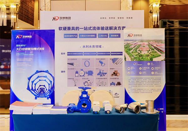 玫德集團帶來大口徑鋼管溝槽連接解決方案、水務閥門、不銹鋼管材管件產品、溝槽管件、各類水表等水務領域一站式產品及解決方案,吸引世界各地的客戶前來溝通交流。