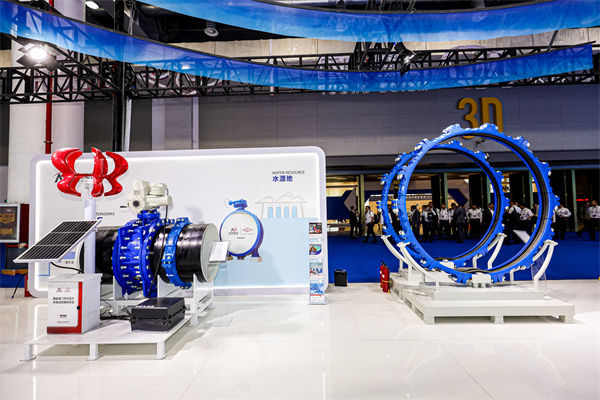 玫德集團(tuán)現(xiàn)場展出大口徑溝槽管卡、大口徑壓槽螺旋管、風(fēng)光互補(bǔ)智能閥門+大溝槽柔性連接系統(tǒng)、不銹鋼供水末端管路傳輸系統(tǒng)、水廠一站式解決方案、二次供水一站式解決方案以及城市管網(wǎng)一站式解決方案等吸引了眾多與會嘉賓的目光,成為全場的焦點(diǎn),得到了水協(xié)領(lǐng)導(dǎo)和現(xiàn)場嘉賓、觀眾的一致認(rèn)可和高度評價。
