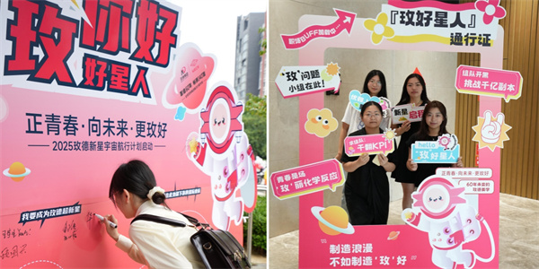 平陰總部與科創中心的巨幅簽名墻前,新員工們莊重簽下姓名,筆墨間盡顯青春抱負。科創中心特設“‘玫’好星人通行證”主題相框,新員工手持“hello,‘玫’好星人”手舉牌創意留影。鏡頭定格的一張張笑臉,成為職業生涯的珍貴扉頁。