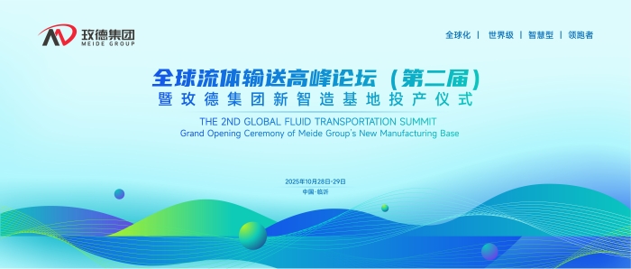 2025年10月28日至29日,全球流體輸送高峰論壇(第二屆)暨玫德集團(tuán)新智造基地投產(chǎn)儀式在山東臨沂即將召開!