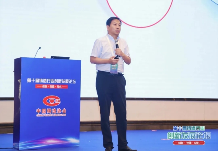 論壇上,中國(guó)鑄造協(xié)會(huì)副會(huì)長(zhǎng)、亞洲鑄造業(yè)聯(lián)合會(huì)執(zhí)行委員、玫德集團(tuán)董事局主席孔令磊受邀發(fā)表了題為《綠色&智能—鑄造企業(yè)創(chuàng)新發(fā)展的思考與探索》的主旨報(bào)告。