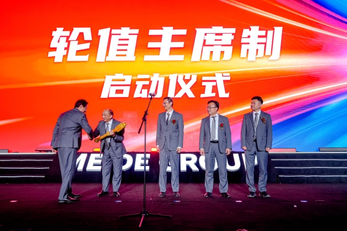 年會期間舉行了莊嚴的輪值主席交接儀式。在全體與會人員及全球分會場同仁的共同見證下,玫德集團董事局當值輪值主席李傳軍接過象征責任與使命的金色權杖正式履職。輪值主席制度是玫德現代治理體系的重要實踐,通過清晰的權責劃分、高效的協同配合,讓玫德運營更穩健、決策更科學。