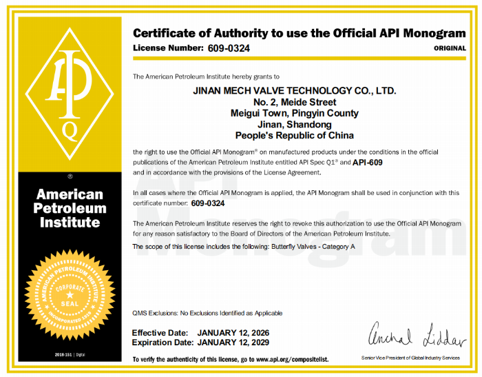2026年1月12日,玫德集團(tuán)迎來(lái)發(fā)展史上的重要里程碑——旗下閥門產(chǎn)品歷經(jīng)嚴(yán)苛審核,正式通過(guò)美國(guó)石油協(xié)會(huì)(American Petroleum Institute,簡(jiǎn)稱API)權(quán)威認(rèn)證,成功斬獲API 6D與API 609兩項(xiàng)核心資質(zhì)!這一成果標(biāo)志著玫德集團(tuán)在能源裝備領(lǐng)域的技術(shù)實(shí)力與質(zhì)量管理體系全面達(dá)到國(guó)際頂尖標(biāo)準(zhǔn),不僅填補(bǔ)了集團(tuán)在高端閥門國(guó)際認(rèn)證領(lǐng)域的重要空白,更成功拿到了進(jìn)入全球石油天然氣高端供應(yīng)鏈的“國(guó)際通行證”,向世界級(jí)綜合能源裝備服務(wù)商邁出了關(guān)鍵一步。